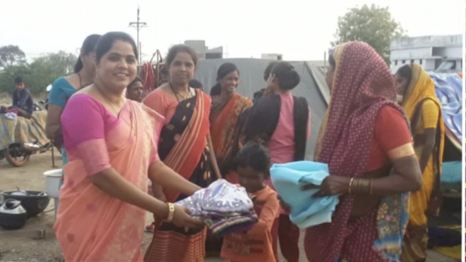 गोसावी समाजाच्या पालावर जाऊन महिलांना दिली मराठी नववर्षानिमित्य साडीचोळीची भेट, लहान मुलामुलींना पण दिले कपडे.