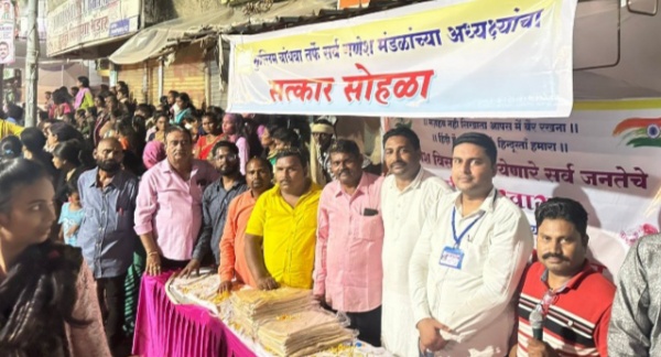 सामाजिक संघटना शिव सेवा हेल्पिंग हँड व ऑल इंडिया कौमी तन्जुम संघटना पदाधिकाऱ्यांनी स्वागत मंडपातून गणेश मंडळांचा केला सत्कार.