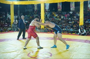 चंद्रपूरात मागील काही दिवसांपासून आमदार किशोर जोरगेवार यांच्या संकल्पनेतून विविध खेळांचे आयोजन केल्या जात आहे. यात क्रिकेट, बाॅडी बिल्डिंग, कबड्डी नंतर राज्यस्तरीय कुस्ती स्पर्धेचे आयोजन करण्यात आले होते. माता महाकालीच्या मैदानात तब्बल 48 वर्षा नंतर कुस्तीचा थरार चंद्रपूरकरांना अनुभवायला मिळाला. यावेळी महान भारत केसरी योगेश बोंबाळे यांची विशेष उपस्थिती होती. गांधी चौकातून महाराष्ट्र केसरी सिंकदर शेख आणि पंजाब व हरियाना केसरी जसप्रीत कौर यांची भव्य मिरवणूक काढण्यात आली. यावेळी आमदार किशोर जोरगेवार यांची उपस्थिती होती. या दरम्यान विविध सामाजिक व क्रिडा संघटनांच्या वतीने रॅलीचे ठिकठिकाणी स्वागत करण्यात आले. सदर रॅली अंचलेश्वर गेट होत महाकाली मंदिरच्या पटांगणात पोहचली. त्यानंतर या विशेष कुस्ती सामन्यांना सुरवात झाली. यावेळी पंजाबचे कमलजित सिंग यांची वाशिमचे विजय शिंदे यांच्यात लढत झाली या लढतीत कमलजित सिंग या कुस्तीगीराचा विजय झाला.