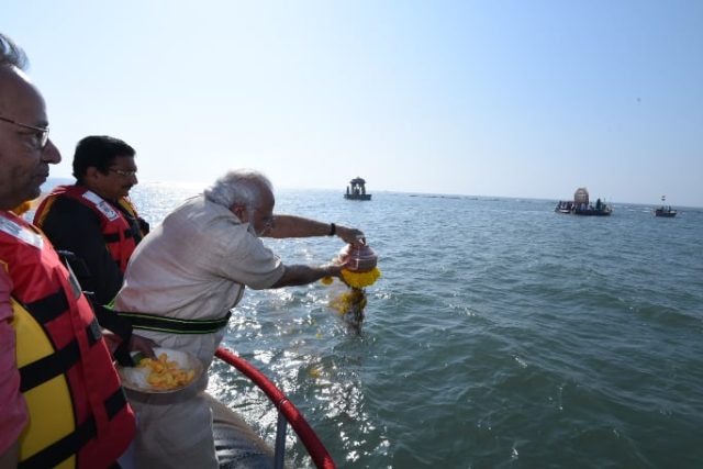 महाराष्ट्राचे आराध्य दैवत छत्रपती शिवाजी महाराज यांच्या नावाने भावनिक राजकारण करून जनतेला मूर्ख बनवत सत्ता स्थापन करणारे मोदी फडणवीस यांची राज्यात व देशात सत्ता असताना जागतिक किर्तीचे स्मारक बनविण्याची घोषणा फेल ठरली असून शिवस्मारकांचे ढोल पिटवून पंतप्रधान नरेंद्र मोदी यांच्या हस्ते मुंबईतील अरबी समुद्रात होणाऱ्या भव्य शिवस्मारकाचं जलपूजन 24 डिसेंबर 2016 मध्ये पंतप्रधान नरेंद्र मोदी यांच्या हस्ते संपन्न करण्यात आलं, यावेळी उद्धव ठाकरे he उपस्थित होते, मात्र आता त्या जलपूजनाला तब्बल 7 वर्ष पूर्ण झाले असताना शिवस्मारकाची एक वीट ही रचल्या गेली नसल्याने शिवप्रेमी सोबत पंतप्रधान मोदी व तत्कालीन मुख्यमंत्री फडणवीस व त्यांनतर सत्तेत असणाऱ्या उद्धव ठाकरे यांनी दगफटका केल्याने सर्वत्र संताप व्यक्त होतं आहे. दरम्यान जलपूजनाच्या या कार्यक्रमाला शिवाजी महाराज यांचे वंशज उदयनराजे आणि संभाजीराजे उपस्थित होते, मात्र आता ते सुद्धा गप्प का आहे हे कळायला मार्ग नसूल शिवछत्रपती यांच्या नावाने केवळ मिरवायचं एवढं काम त्यांचं सुरु असल्याचं चित्र दिसत आहे.