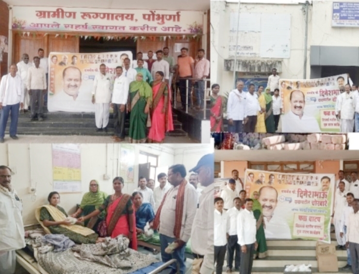 वृद्धांसोबत भोजनचा आस्वाद घेत दीघायुष्यासाठी आशीर्वाद घेतला.त्यानंतर पोंभुर्णा आणि मूल येथेही फळवाटप कार्यक्रमाचे आयोजन करण्यात आले होते. पोंभुर्णा येथील सामान्य रुग्णालयात रुग्णांना फळवाटप करण्यातआली तर मूल येथीलहि सामान्य रुग्णालयात रुग्णांना फळवाटप करण्यातआली.