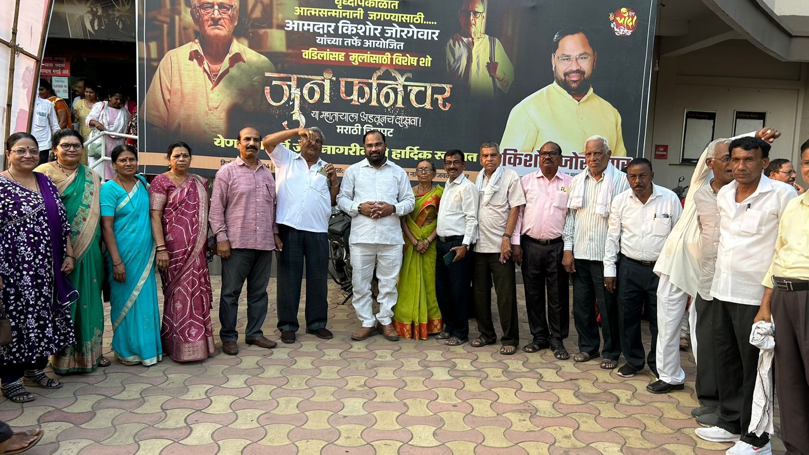 चंद्रपूर:-जेष्ठ नागरिकांच्या समस्यांवर आधारित जुनं फर्निचर या सिनेमाचा शो आमदार किशोर जोरगेवार यांनी वयोवृध्द नागरिकांना दाखविला. जेष्ठ नागरिकांमध्ये जागरुकता निर्माण करण्यासाठी आज आपण आठवड्याभरात दुस-यांदा जेष्ठ नागरिकांना हा सिनेमा दाखविला असल्याचे यावेळी आमदार किशोर जोरगेवार म्हणाले. हा सिनेमा बघून जेष्ठांच्या डोळ्यात पाणी तरडले. यावेळी राधाकृष्ण सिनेमागृहात जेष्ठ आणि युवक अशा जवळपास 800 नागरिकांना हा सिनेमा पाहिला