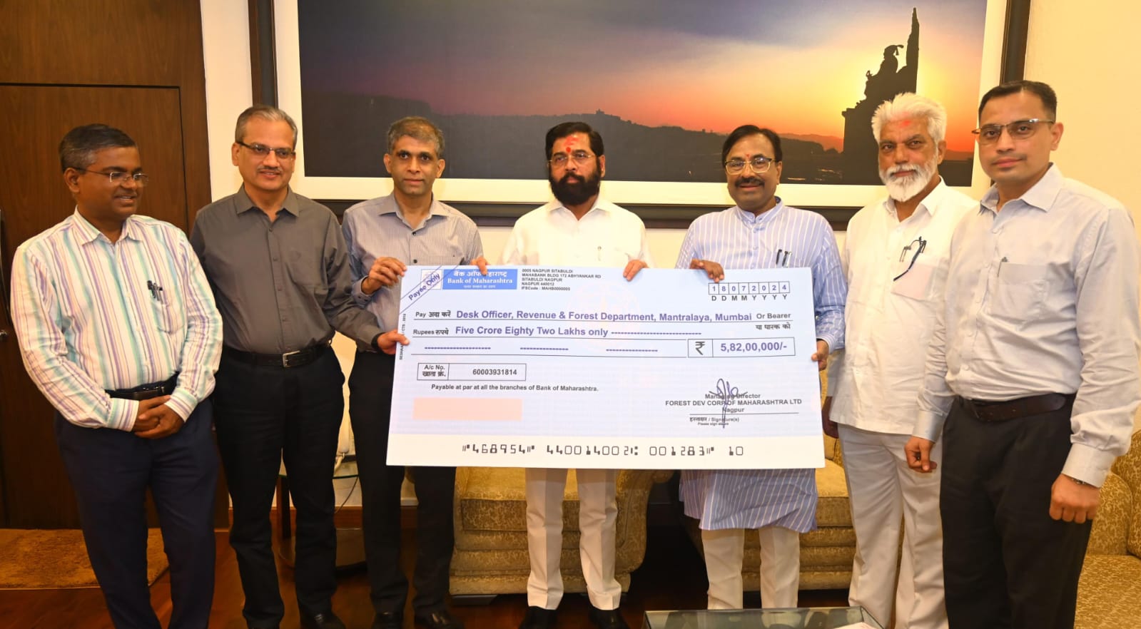 चंद्रपूर  :-  मुबई दि. ५ : सन १९८८-८९ पासून सातत्याने नफा अर्जित करणाऱ्या वन विकास महामंडळाने सन २०२२-२३ या आर्थिक वर्षात आतापर्यंतचा सर्वाधिक असा ५ कोटी ८२ लक्ष रुपयांचा लाभांश राज्य शासनाला दिला असून, या रकमेचा धनादेश राज्याचे वन, सांस्कृतिक कार्य आणि मत्स्यव्यवसाय मंत्री ना. सुधीर मुनगंटीवार यांनी मुख्यमंत्री श्री. एकनाथ शिंदे यांच्याकडे बुधवारी सुपूर्द केला.