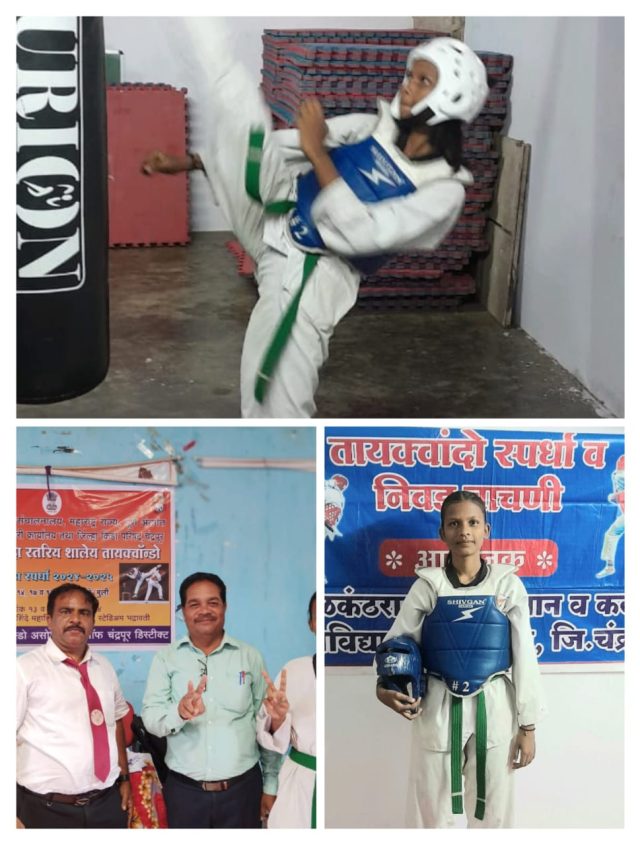 चंद्रपूर:-भद्रावती नीळकंठ शिदे महाविद्यायातील लक्ष्मी रंदये ही सतत या स्पर्धेत सहभागी होऊन ,आयोजित जिल्ास्तरीय ताक्यावांदो स्पर्धेत यश मिळविण्यासाठी प्रयत्न केले आणि भरघोस यश मिळविला, आणि घोसरी (ताडोबा) या छोट्या गावाचे नाव मोठे केले , दिवस रात्र मेहनत करून सर्वप्रथम आईवडिलांचे व महाविद्यालयाचे नाव मोठे करण्यास यशस्वी झाली,