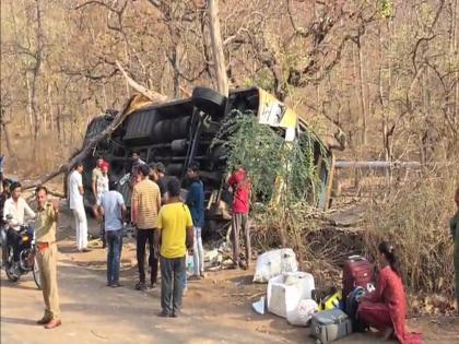 चालकाचे वळणावर नियंत्रण सुटल्याने ट्रॅव्हल्स रस्त्याच्या खाली दरीत पलटली. झाडाला ट्रॅव्हल्स अडल्याने मोठी घटना टळली.