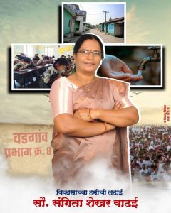 “आमच्या प्रभागाचा विकास म्हणजेच आमचा अभिमान, आणि त्या विकासाची धुरा सांभाळणाऱ्या सौ. संगीता शेखर वाढई म्हणजेच आमच्या मनातील नगरसेवक.”