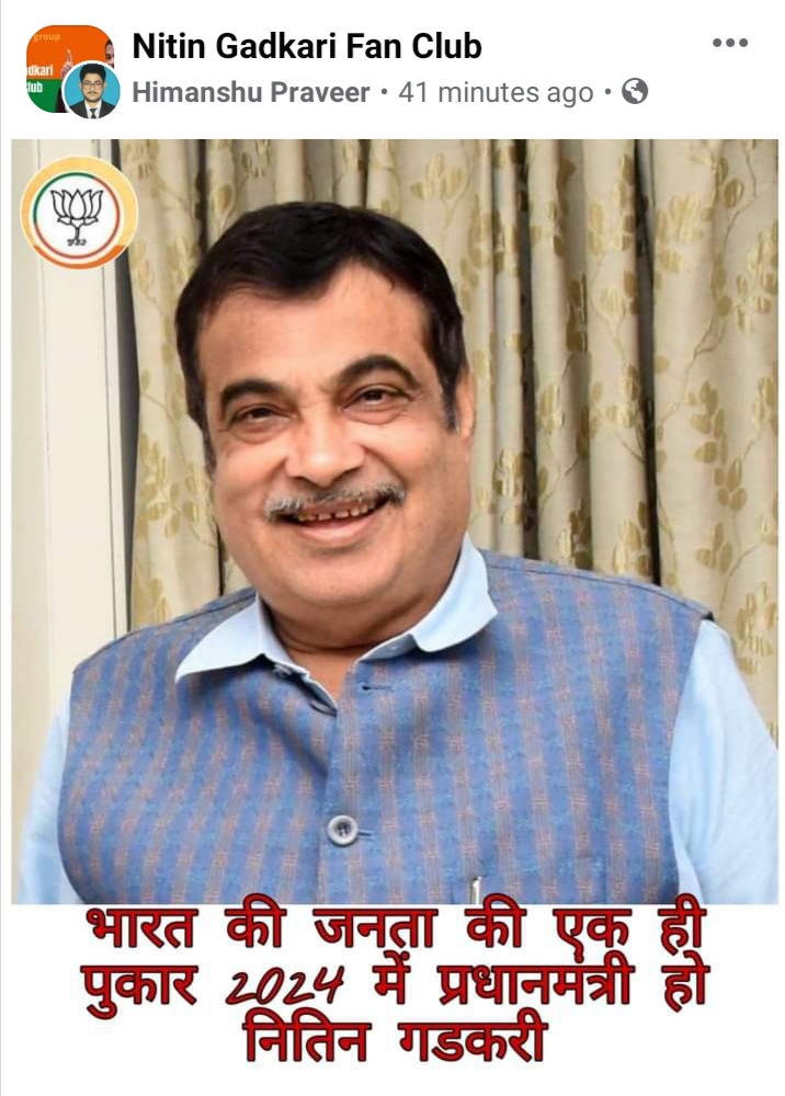 पंतप्रधान नरेंद्र मोदींची छबी धुमील झाल्याने भाजप घेणार नवीन पवित्रा? फेसबुकच्या nitin gadakari fan club वरून हुंकार.