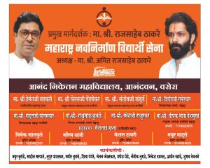 वरोरा भद्रावती विधानसभा क्षेत्रात महाराष्ट्र नवनिर्माण सेनेच्या शाखा बांधणीचा कार्यक्रम सतत सुरू असून आता हा मोर्चा विद्यार्थी सेनेच्या शाखा बांधणीकडे सुद्धा वळला आहे, वरोरा येथील पद्मश्री बाबा आमटे यांच्या आनंद निकेतन महाविद्यालयासमोर मनविसे शाखा फलकांचे उद्घाटन नुकतेच दिनांक 10 ऑगस्ट ला दुपारी 1.00 वाजता महाराष्ट्र नवनिर्माण महिला सेना राज्य उपाध्यक्षा रिटाताई गुप्ता यांच्या हस्ते करण्यात आले. यावेळी मनसे राज्य सरचिटणीस हेमंत गडकरी,मनसे स्थानिक नेते रमेश राजूरकर, मनसे जिल्हाध्यक्ष दिलीप रामेडवार, मनविसे जिल्हाध्यक्ष राहुल बालमवार,मनसे जिल्हा उपाध्यक्ष राजू कुकडे, जिल्हा सचिव विनोद सोनटक्के, तालुका अध्यक्ष वैभव दहाने, तालुका उपाध्यक्ष प्रशांत बदकी मनविसे शहर उपाध्यक्ष सत्या मांडवकर व इतर पदाधिकारी उपस्थित होते.