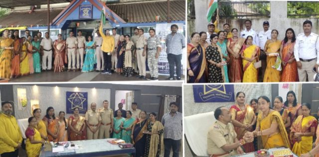 दरवर्षी महाराष्ट्र नवनिर्माण महिला सेनेतर्फे शहारातील कर्तव्यावर असलेल्या सर्व पोलीस स्टेशन मधील पोलीस अधिकारी व कर्मचाऱ्यांना राखी बांधून रक्षाबंधन चा सोहळा साजरा करण्यात येतो. यावर्षी सुद्धा महिला सेनेच्या जिल्हाध्यक्षा सुनीता गायकवाड यांच्या पुढाकाराने चंद्रपूर शहरातील मनसे महिला सेनेच्या पदाधिकारी व कार्यकर्त्या यांच्या माध्यमातून शहारातील शहर पोलीस स्टेशन रामनगर पोलीस स्टेशन व ट्रॅफिक पोलीस प्रशासनाच्या पोलीस अधिकारी व कर्मचारी यांना राखी बांधून रक्षाबंधनाचा सोहळा साजरा करण्यात आला.